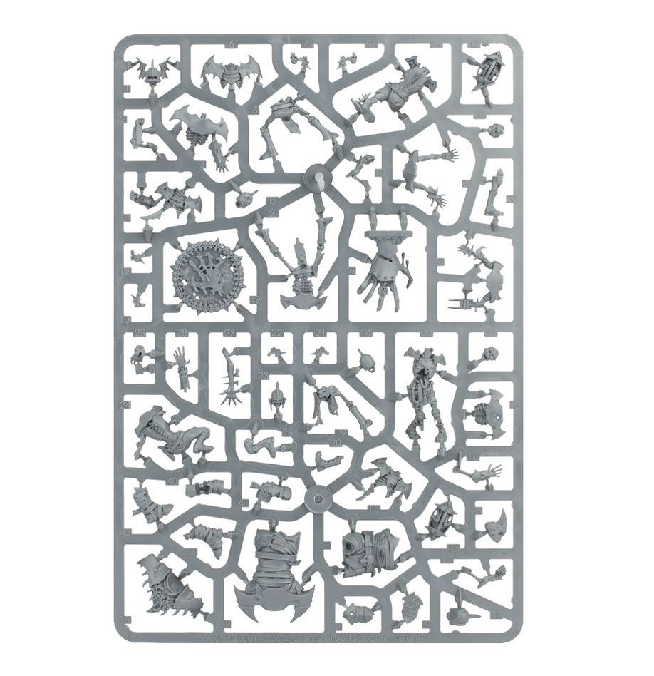 The Champions of Death team set contains 14 multipart plastic players covered in rusted armour, and eight thematic gaming accessories: