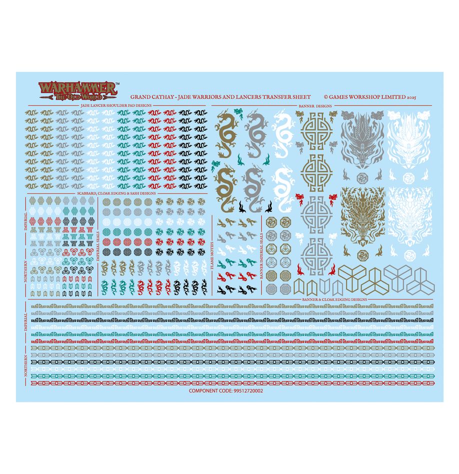 This kit comprises 292 plastic components, 20x Citadel 25mm Square Bases, and 1x Grand Cathay Jade Warriors and Lancers Transfer Sheet containing 404 high-quality waterslide transfers to decorate your miniatures.