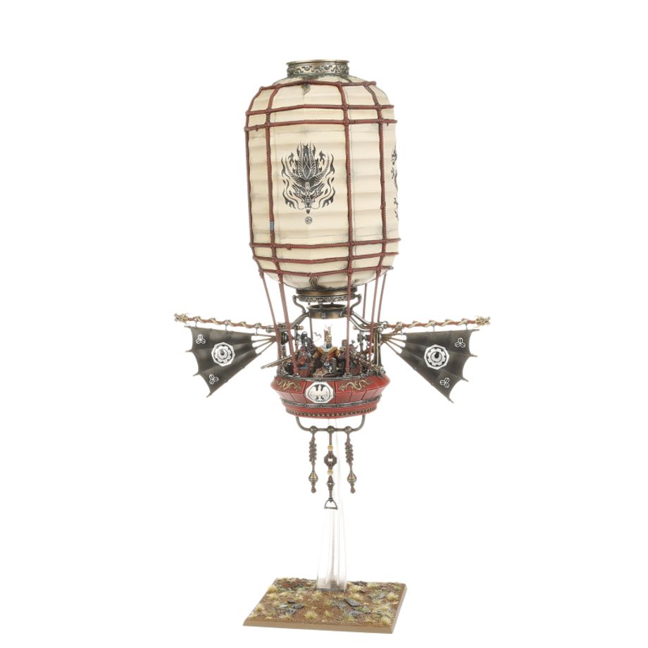 Sky Lanterns are wonders of Cathayan ingenuity used by the Celestial Dragon’s armies to observe enemies from on high and direct troops in battle. Beneath the lantern hangs an armoured gondola, from which one of Grand Cathay’s many Magistrates uses fans and banners to signal troops, or direct the fire of the army’s war machines. Should enemy flyers or missile troops get too close, pairs of Crane Gunners snipe from their exceptional vantage point.