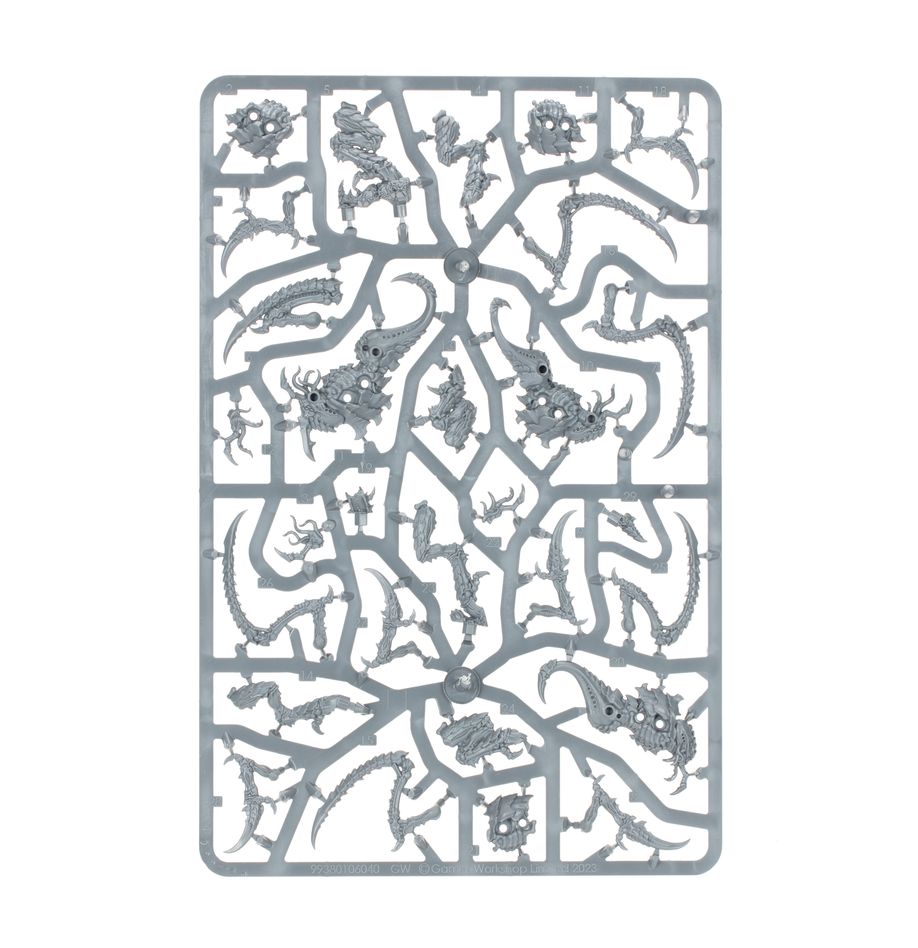 This multipart plastic kit builds three Von Ryan’s Leapers, terrifying Tyranid ambush-beasts. These creatures spring from hiding to shred their unsuspecting prey using whip-fast slashes from two pairs of razor-sharp talons – including powerful mantis-like arms resembling the larger Lictor bioform. Then they feast, with a revolting combination of fangs, mandibles, and feeder tendrils.