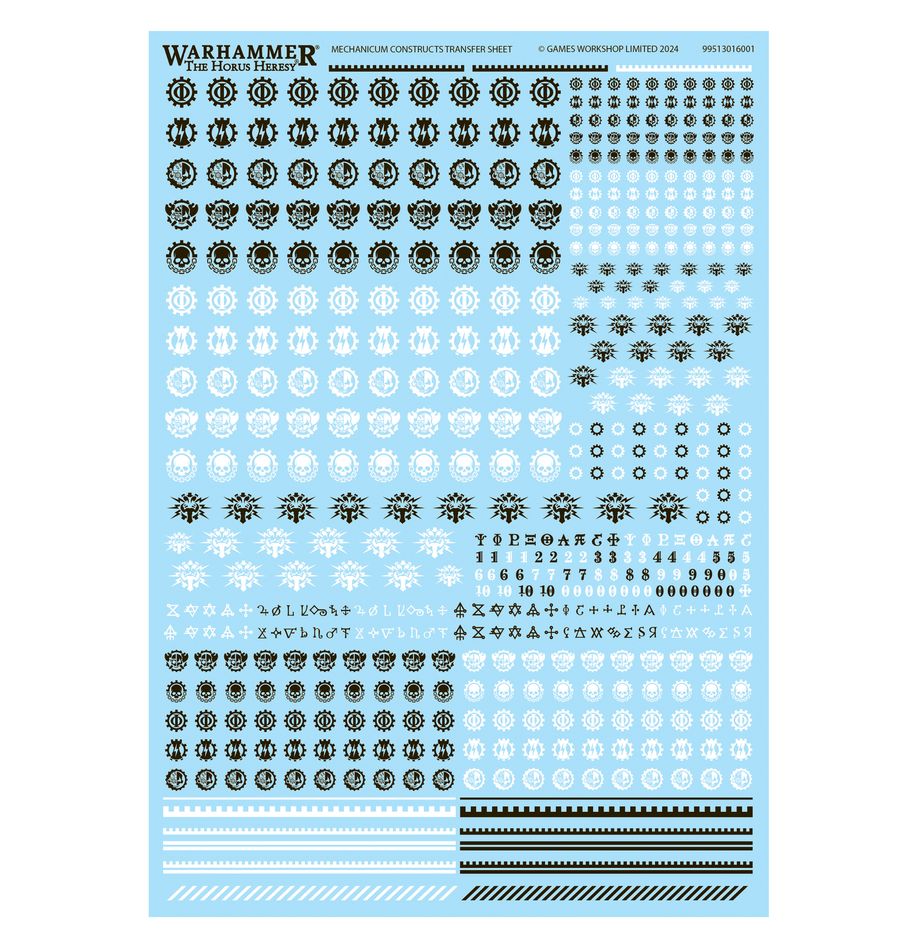 This kit comprises 598 plastic components, 1x Citadel 120mm Oval Base, 2x Citadel 60mm Round Bases, 6x Citadel 40mm Round Bases, 2x Mechanicum Macro-constructs Transfer Sheets each containing 394 high-quality waterslide transfers, and 2x Mechanicum Constructs Transfer Sheets each containing 558 high-quality waterslide transfers to customise your miniatures.