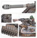 The Leman Russ Strike Tank can be armed with one of four turret weapons – a battlecannon, twin lascannon, gravis autocannon, or vanquisher cannon with a co-axial mounted heavy stubber. You can also choose from five different hull-mounted weapons – a heavy bolter, lascannon, autocannon, multi-laser, or heavy flamer. There's an optional hunter-killer missile, searchlights, and dozer blade, along with a pintle-mounted heavy flamer, multi-laser, or heavy stubber. There is also a cognis-signum to upgrade to a Command Tank, and an optional flare shield if you choose to do so.