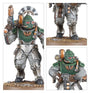 The Tactical Command Section builds an Auxilia Captain, armed with your choice of laspistol, blast pistol, needle pistol, volkite serpenta, plasma pistol, or hand flamer, and power fist, power sword, or charnabal sabre. The rest of the squad have options to take a command vox, augury scanner, and cohorts vexilla. They can also be used as a Line Command Section or Legatine Command Section, whose Legate Marshal can be armed with volkite serpenta, inferno pistol, archaeotech pistol, laspistol, blast pistol, needle pistol, plasma pistol, or hand flamer, and a thunder hammer, paragon blade, power fist, power sword, or charnabal sabre.