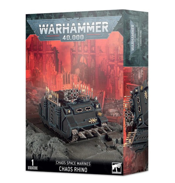 This multipart plastic kit builds one Chaos Rhino for your Chaos Space Marines, World Eaters, Emperor's Children, Death Guard, or Thousand Sons armies in games of Warhammer 40,000. The transport vehicle adds mobility by ensuring your Chaos infantry gets to where you need them – be they frothing Berzerkers, indomitable Plague Marines, overstimulated Noise Marines, sorcery fuelled Rubric Marines, or heavily armed Havocs.