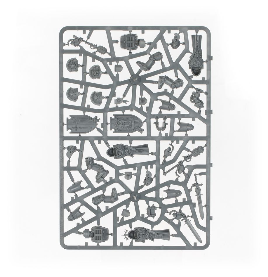 This incredible kit includes a teleport homer and a Watcher in the Dark carrying a censer, both on their own base. You'll also find plenty of cosmetic options, including interchangeable arm poses, different shield designs, a variety of tilting plates, and more than enough hooded or helmeted heads to outfit your entire squad in the style of your choosing.