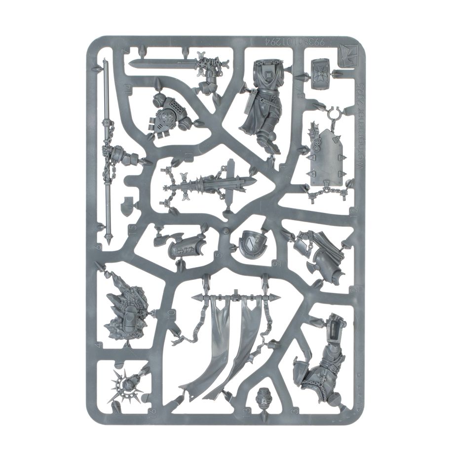 This multipart plastic kit builds one Crusade Ancient, a veteran warrior tasked with carrying a battle standard for your Black Templars armies in games of Warhammer 40,000. Crusade Ancients inspire their brethren to fight all the harder. Experts in combat, they fell enemies with heavy blows of their master-crafted power swords. Choose between two icon decorations – one themed around the Armageddon crusade with an Ork skull, and the other a blank shield, onto which you can paint your own heraldry.