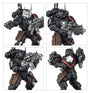 The Jump Pack Intercessors can build an optional Sergeant, with a choice of two heads, and armed with a heavy bolt pistol, hand flamer or plasma pistol, and a chainsword, power sword or power fist. The other members of the squad each have a choice of two different heads, and one can swap their bolt pistol for a plasma pistol.
