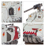 The Impulsor can replace its storm bolters with fragstorm grenade launchers, and can optionally take an ironhail heavy stubber. There are also options for a bellicatus missile array, ironhail skytalon array, orbital comms array, or shield dome.